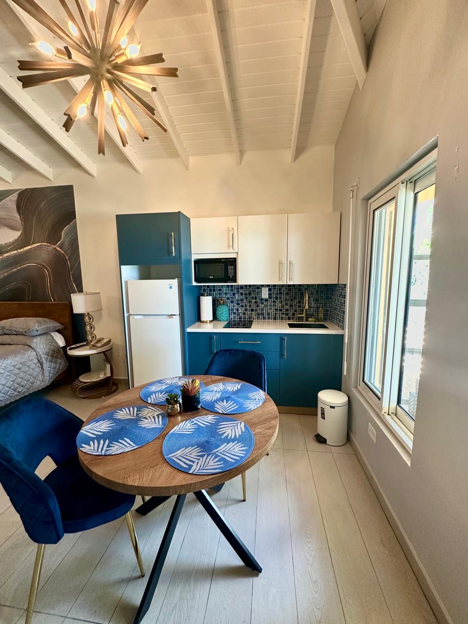 Looking for a serene and relaxing vacation spot on the beach where you can unwind with your loved ones? Look no further than the Deluxe Studio! Beach front studio with a king bed, kitchenette and private patio outside.Â